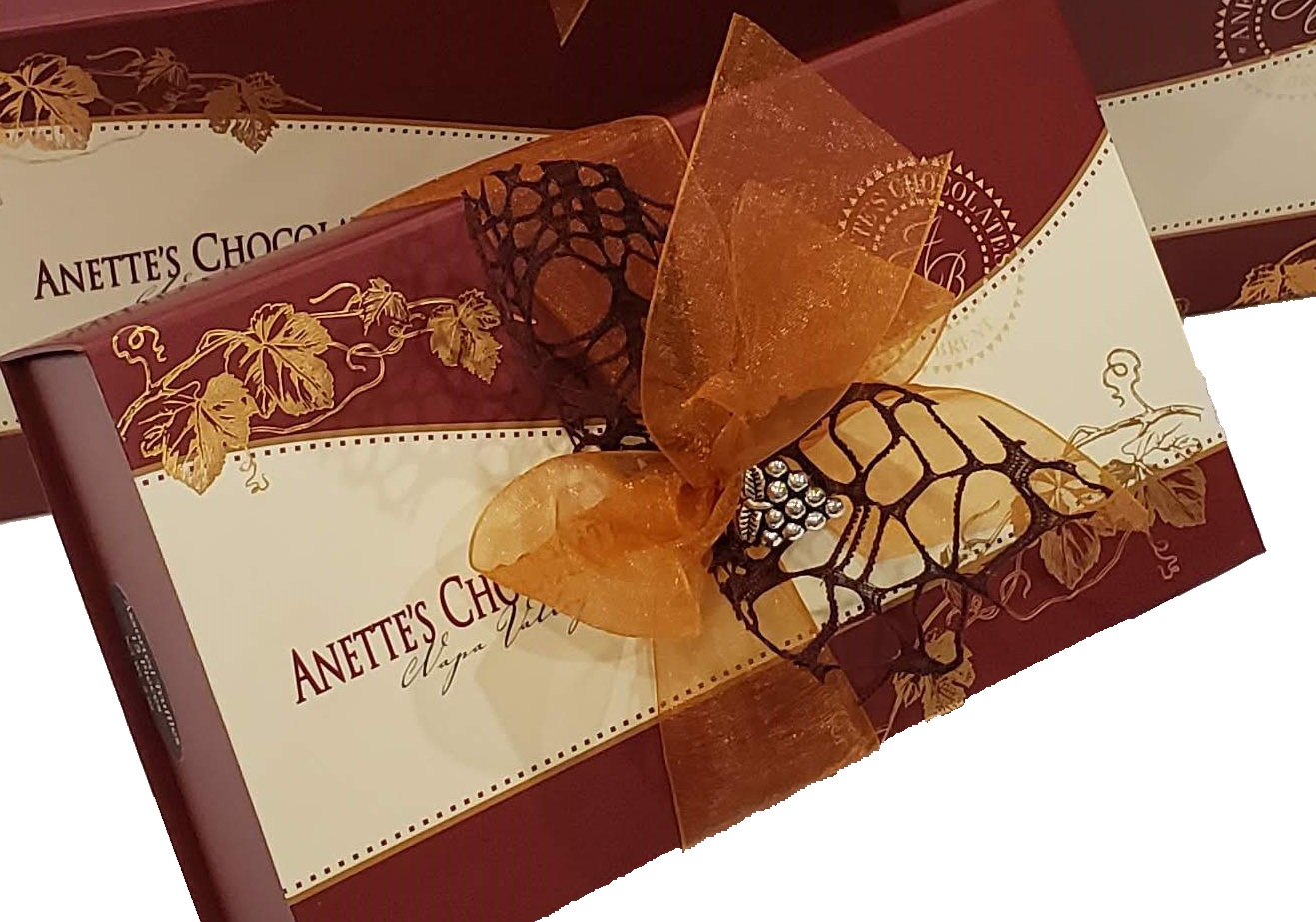 Anette's Holiday Charm Ensemble boxes consists of Milk & Dark Truffles, Artisan Creams, Caramels & Nuts